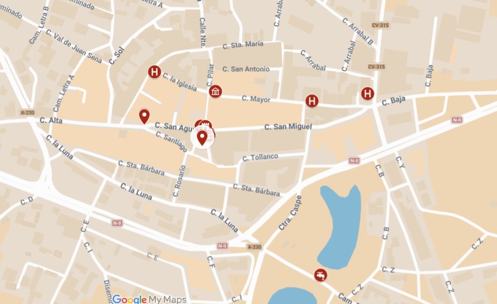 Posee una casa en la calle del Castillo conf.ª con la de Martín Gilaberte y casa de fábrica de la Yglesia (268).